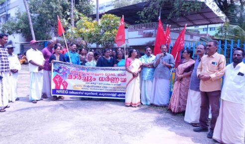കരുനാഗപ്പള്ളി : തൊഴിലുറപ്പ് പദ്ധതി അട്ടിമറിക്കുന്ന കേന്ദ്രസർക്കാർ നയത്തിനെതിരെ തൊഴിലാളികൾ കരുനാഗപ്പള്ളി ബിഎസ്എൻഎൽ
