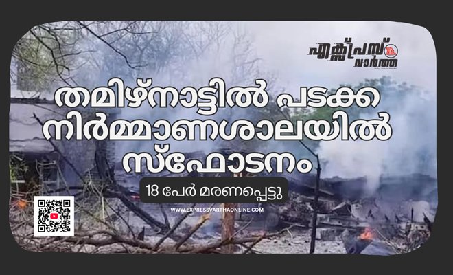 വിരുദുനഗർ: തമിഴ്നാട്ടിലെ വിരുദുനഗറിൽ പടക്കനിർമ്മാണശാലയിലുണ്ടായ സ്ഫോടനത്തിൽ 18 തൊഴിലാളികൾ കൊല്ലപ്പെട്ടു. നിരവധി പേർക്ക് പരുക്കേറ്റു. വിരുദുനഗറിനടുത്തുള്ള കട്ടനാർപട്ടിയിൽ പ്രവർത്തിക്കുന്ന വനജ ക്രാക്കർ ഫാക്ടറിയിലാണ് ഇന്ന് ഉച്ചകഴിഞ്ഞ് അപകടമുണ്ടായത്.