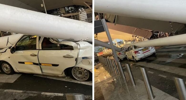 കനത്ത മഴയിൽ ഡൽഹി വിമാനത്താവളത്തിലെ മേൽക്കൂര തകർന്നുവീണു;ഒരാൾ മരിച്ചു, എട്ട് പേർക്ക് പരിക്ക്.